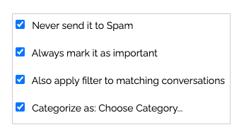 5. Click the blue "Create filter" button, to save your settings.